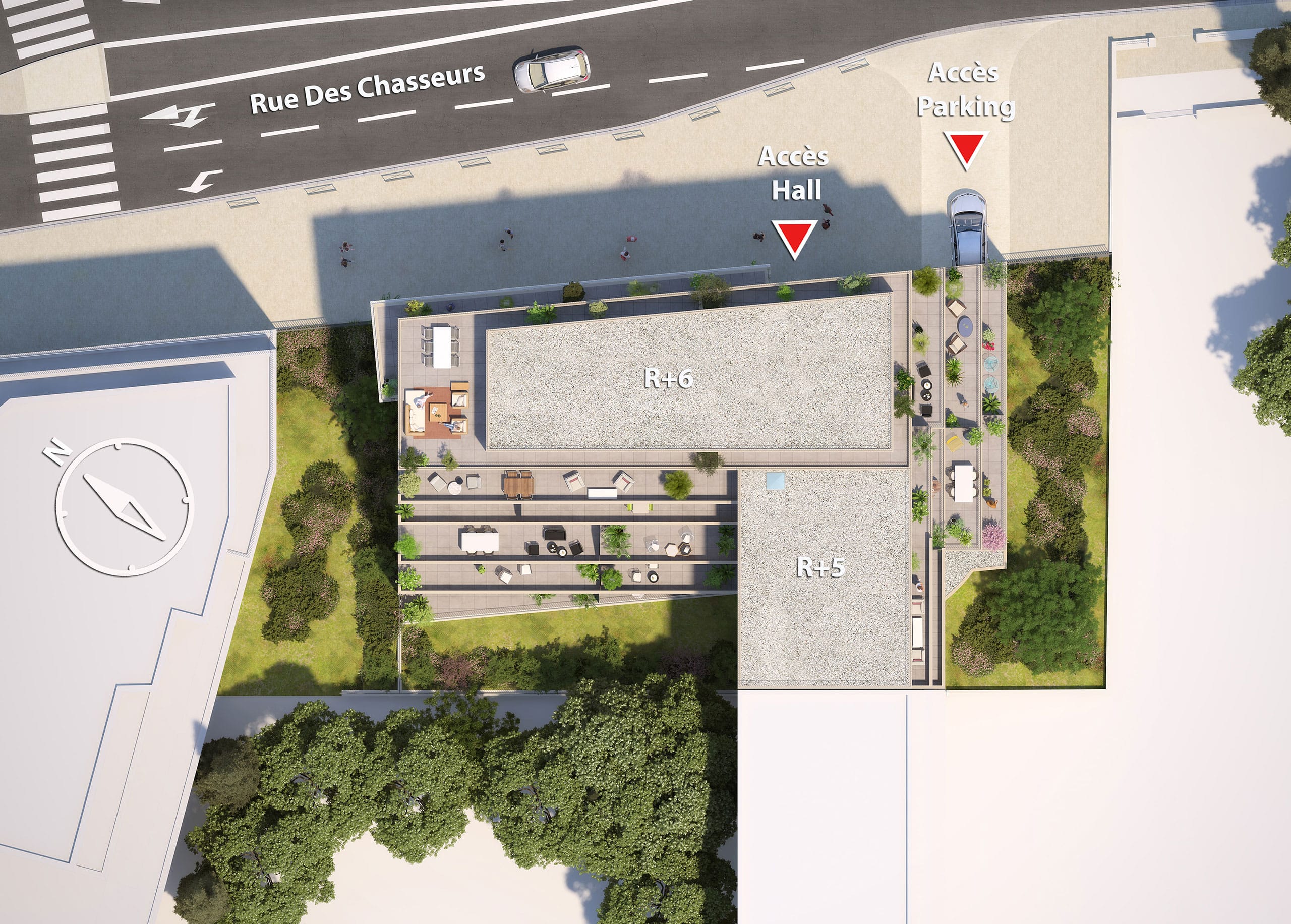 Diane est une résidence de 6 étages avec un roof top en attique. Le bâtiment en L abrite en son cœur un jardin méditerranéen et dans son sous-sol, un parking privatif de 32 places de stationnement sur 2 niveaux. La résidence se compose de 27 appartements du T1 au T4 dont un grand duplex sur le toit. À l’exception des T4, tous les appartements bénéficient d’une cuisine équipée. Le rez-de-chaussée accueille deux surfaces commerciales.